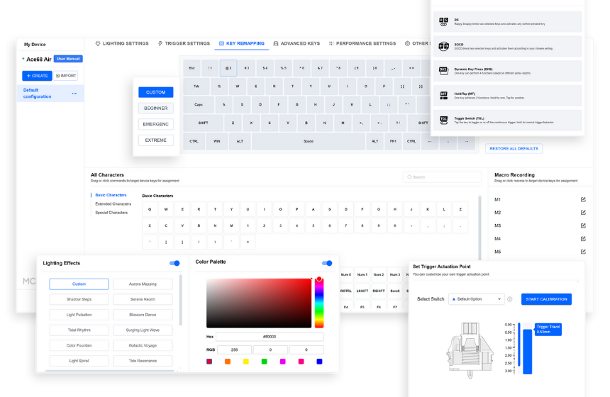 - Từ bàn phím cơ MCHOSE G98, G87, X75 đến chuột và tai nghe gaming, tất cả đều được tích hợp tối ưu với MCHOSE HUB – mang đến sự cá nhân hóa toàn diện và hiệu suất tối đa.