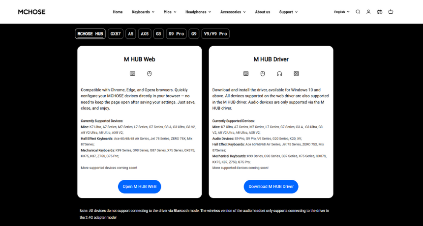 ✅ Hỗ trợ toàn bộ sản phẩm MCHOSE (bàn phím, chuột, tai nghe, v.v.)