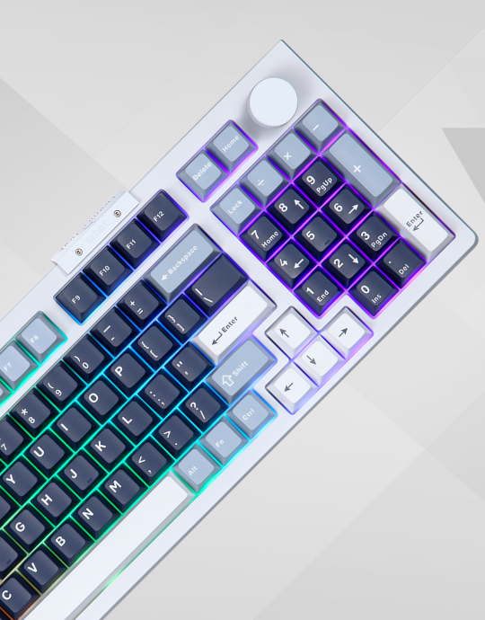 Keycaps PBT hai tông màu bền bỉ, chống phai, giữ cho bàn phím luôn mới mẻ và phong cách.